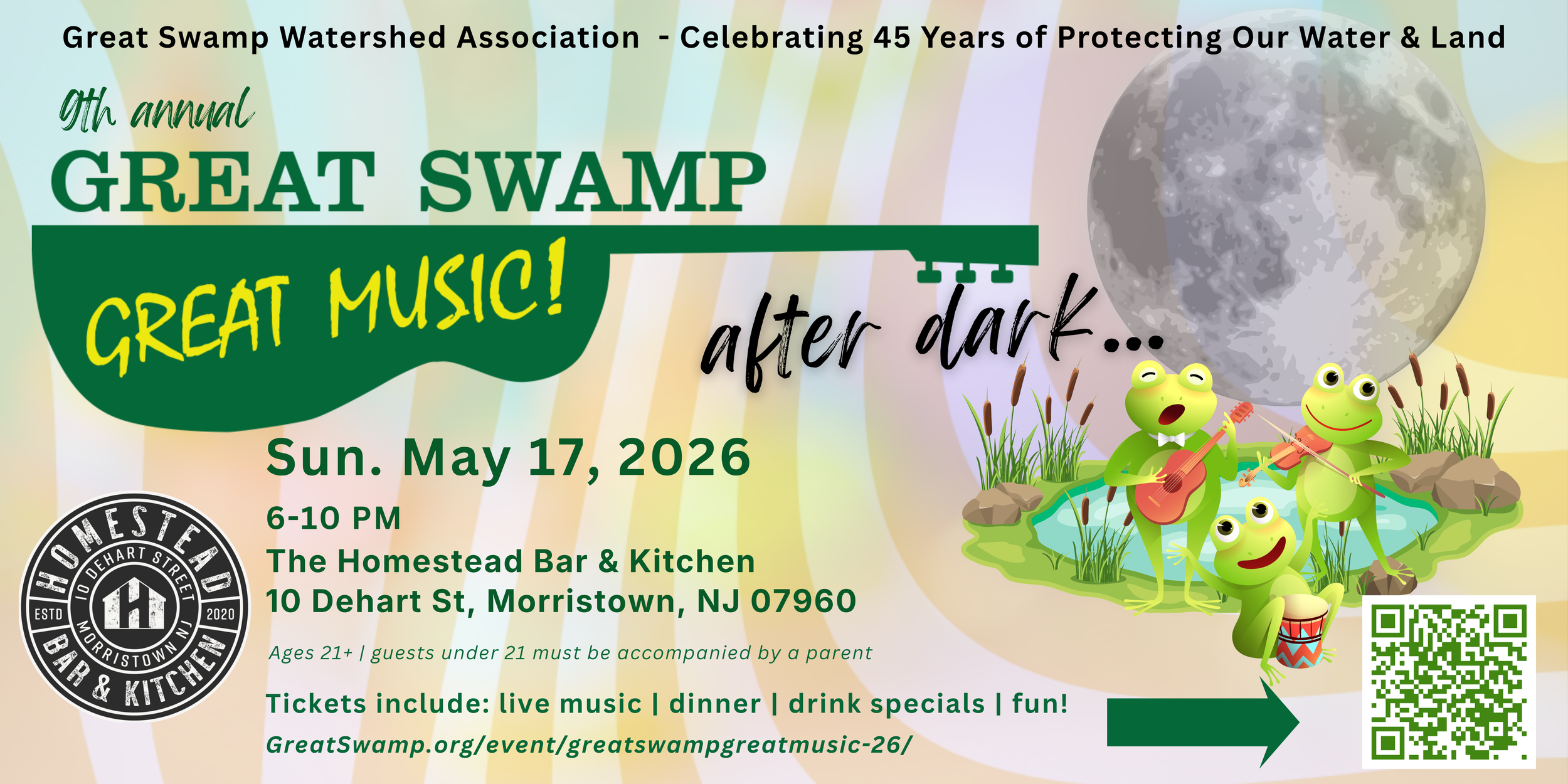 Back to All Events GREAT SWAMP MUSIC Sunday, May 17, 2026 6:00 PM 10:00 PM 10 Dehart Street Morristown, NJ, 07960 United States (map) Google Calendar ICS GET YOUR TICKETS HERE!