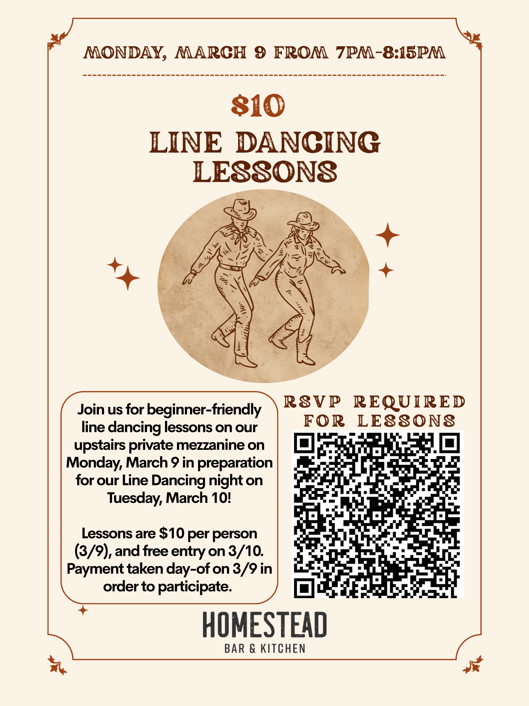 LINE DANCING LESSONS Monday, March 9, 2026 7:00 PM 8:15 PM 10 Dehart Street Morristown, NJ, 07960 United States (map) Google Calendar ICS RSVP FOR A SPOT ON THE DANCE FLOOR!