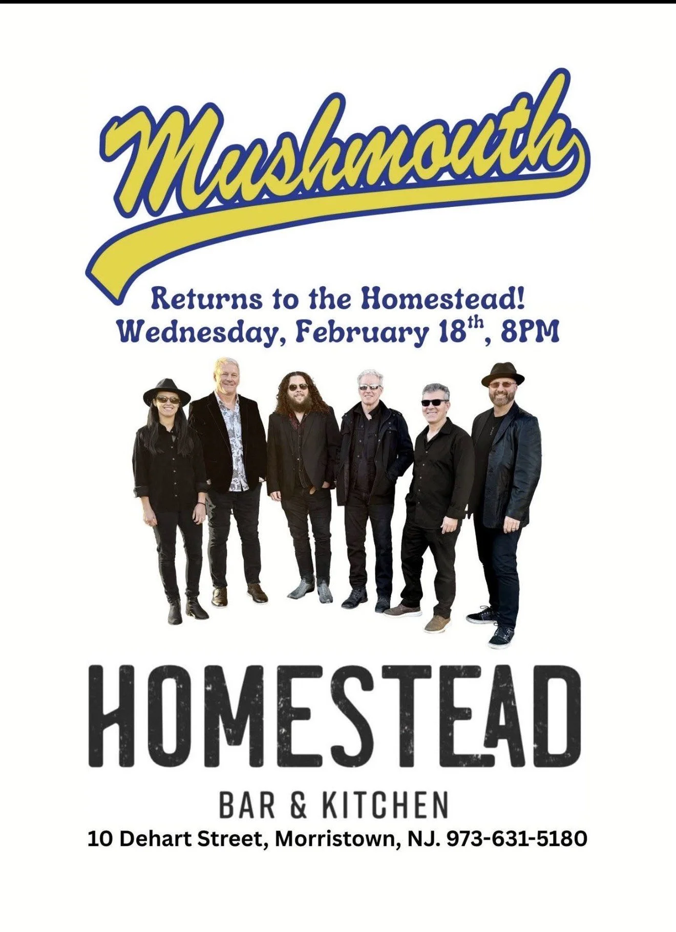 MUSHMOUTH Wednesday, February 18, 2026 8:00 PM 9:00 PM 10 Dehart Street Morristown, NJ, 07960 United States (map) Google Calendar ICS