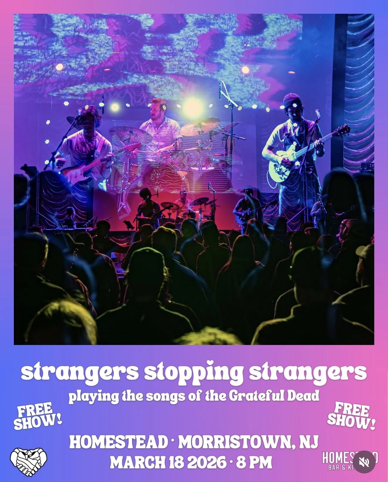 Back to All Events STRANGERS STOPPING STRANGERS Wednesday, March 18, 2026 8:00 PM 11:59 PM 10 Dehart Street Morristown, NJ, 07960 United States (map) Google Calendar ICS